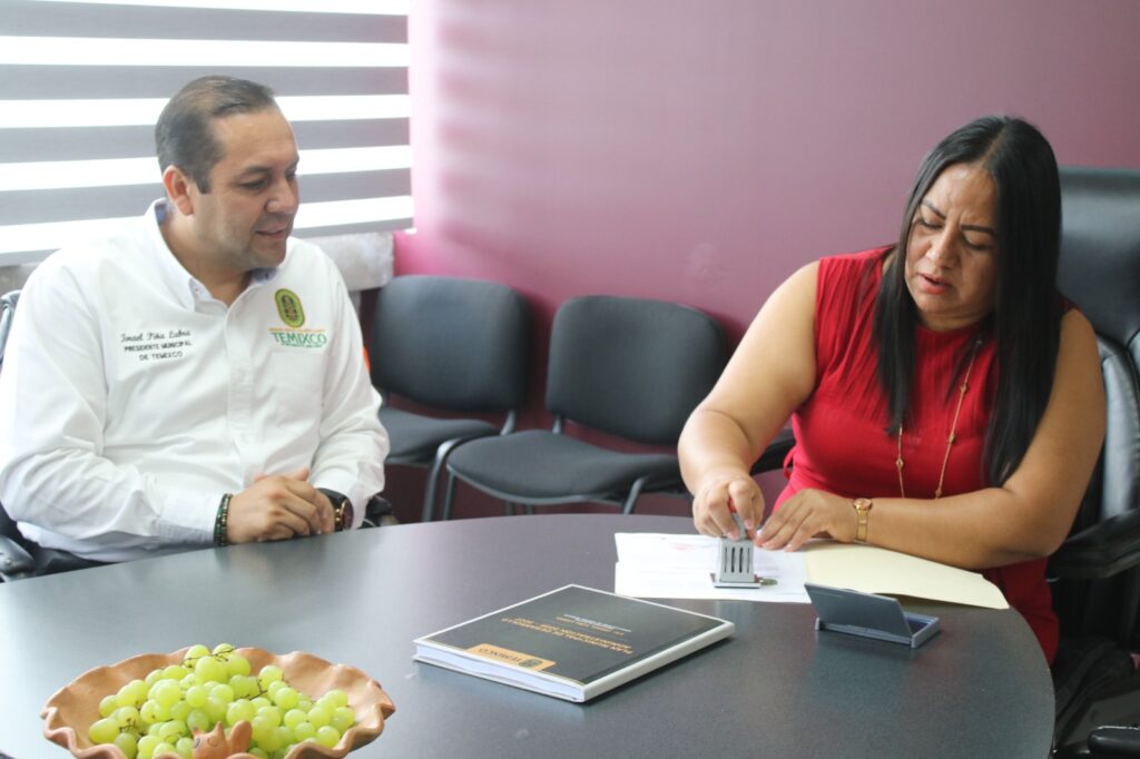 Cuernavaca, Mor. (25 de junio). – La diputada presidenta del Congreso del Estado de Morelos, Jazmín Solano López, sostuvo un encuentro institucional con el presidente municipal de Temixco, Israel Piña Labra, quien hizo entrega formal del Plan Municipal de Desarrollo 2025–2027.