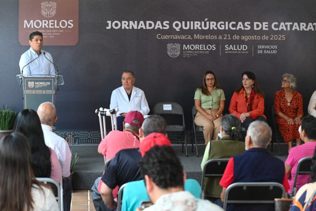 Cuernavaca, Mor. (22 de agosto). – El Gobierno de Morelos trabaja por el bienestar de la población, con especial atención en los sectores más vulnerables, quienes enfrentan mayores barreras para acceder a servicios de salud especializados. En este esfuerzo por mejorar la calidad de vida de las personas adultas mayores, la titular del Poder Ejecutivo, Margarita González Saravia asistió a las Jornadas Quirúrgicas de Cataratas 2025.