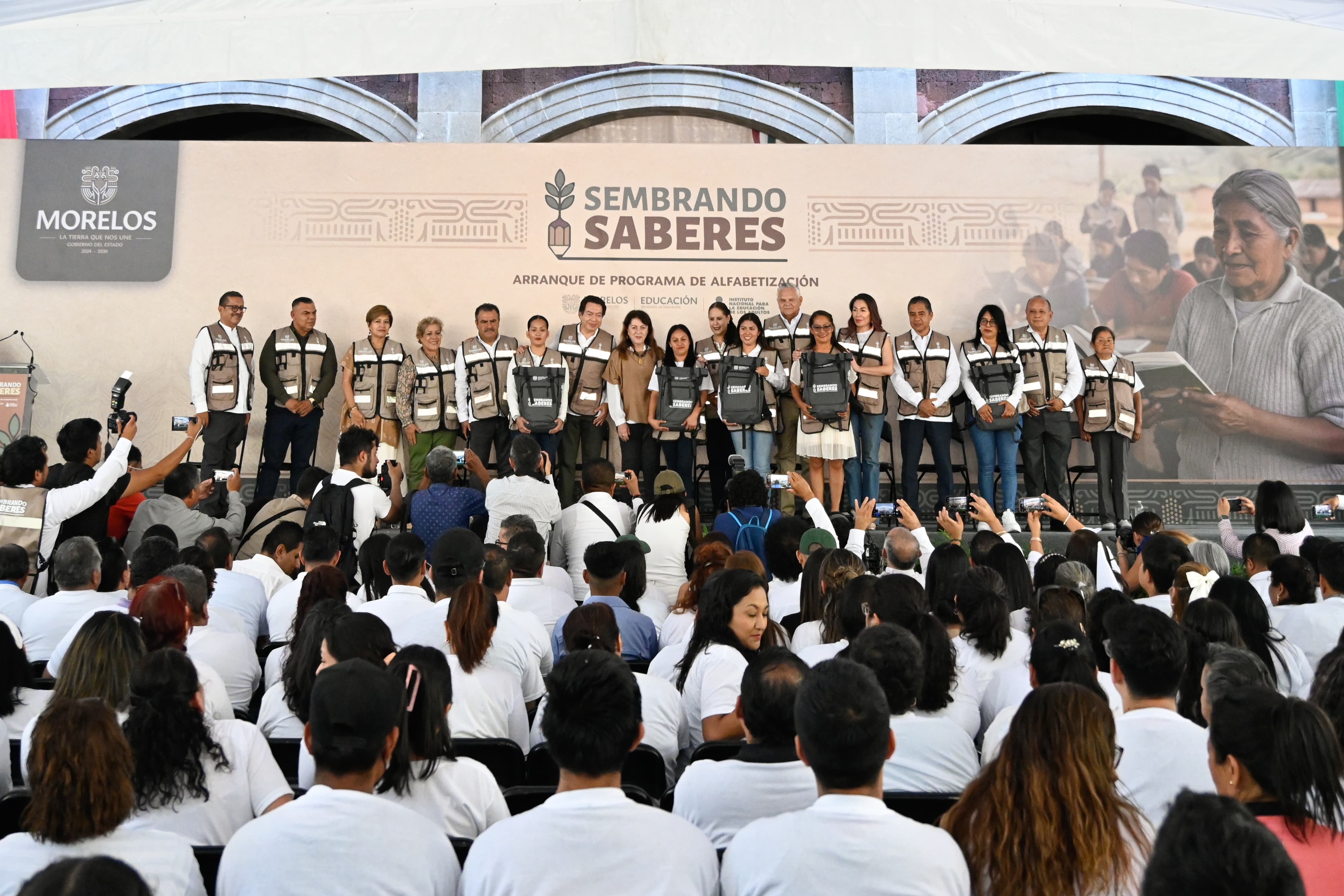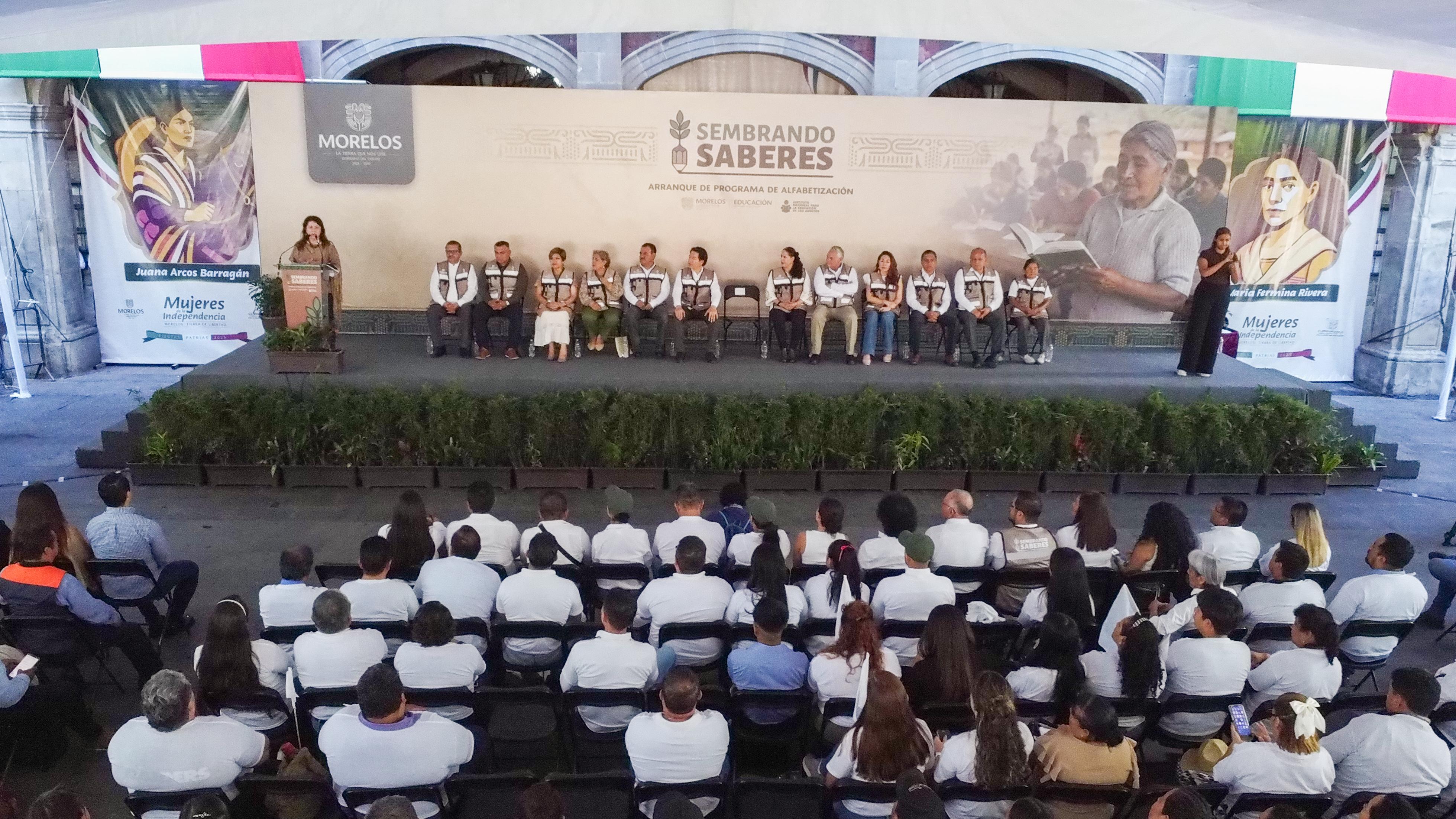 Cuernavaca, Mor. (6 de septiembre). – Con el firme propósito de avanzar hacia la meta de que en Morelos todas las personas sepan leer y escribir, sin importar su edad o condición social, este día inició la campaña de alfabetización “Sembrando Saberes”, en un emotivo acto encabezado por la gobernadora Margarita González Saravia y el titular de la Secretaría de Educación Pública (SEP) del Gobierno de México, Mario Delgado Carrillo.