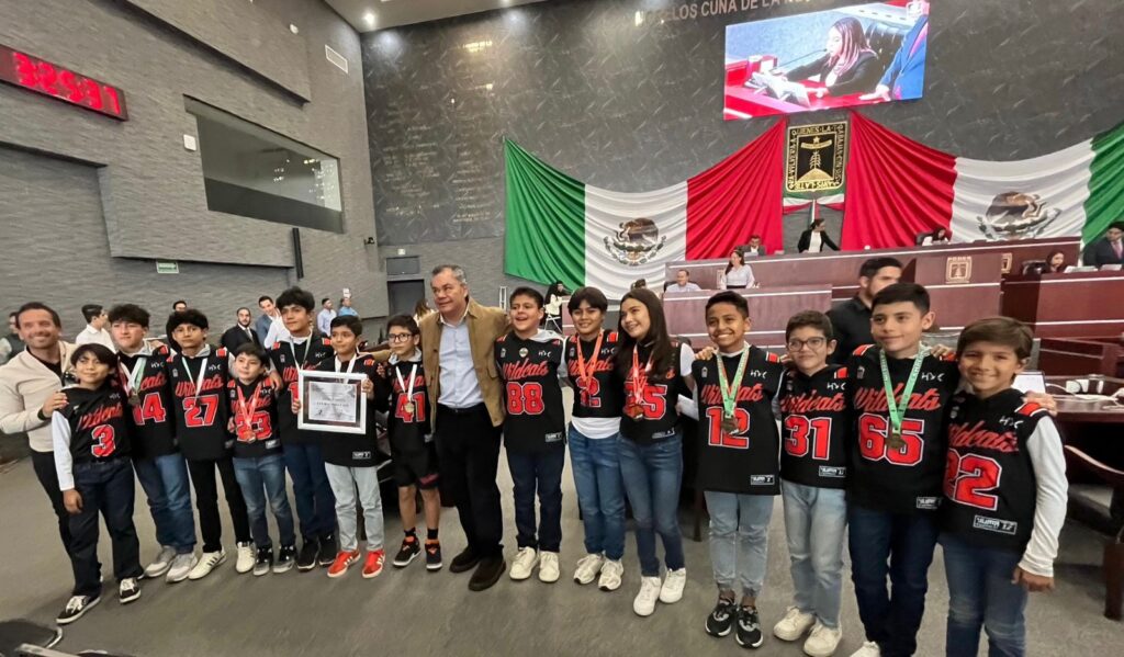 Cuernavaca, Mor. (13 de diciembre). – A iniciativa del coordinador del grupo parlamentario de Morena, Rafael Reyes, los integrantes del Congreso del estado reconocieron al equipo de flag football Wildcats Cuernavaca, campeones nacionales en las ramas varonil y mixto de los torneos de futbol bandera efectuados en días recientes en el Estado de México y Jalisco, respectivamente.