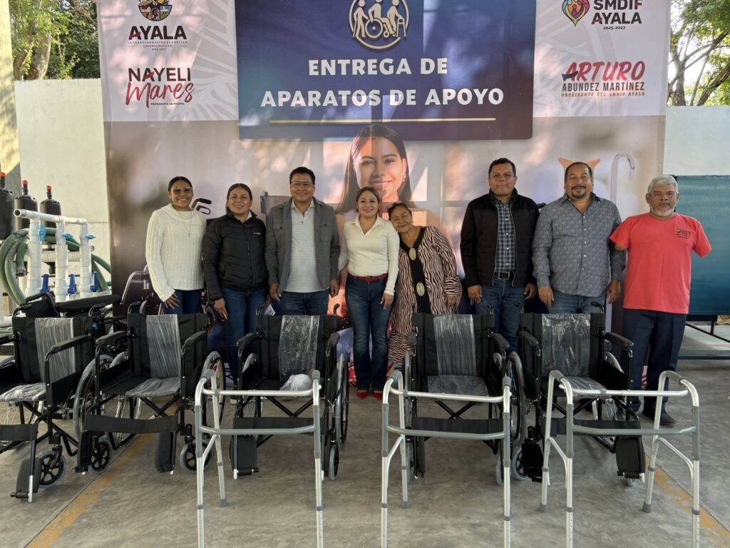Ayala, Mor. (18 de diciembre) – Con el firme compromiso de transformar vidas a través de la sensibilidad y el trabajo constante, el municipio de Ayala celebró este día la tercera entrega de aparatos de apoyo para personas con discapacidad física o movilidad reducida. El evento estuvo encabezado por la alcaldesa Nayeli Mares Mérida y el presidente del Sistema DIF Municipal, Arturo Abúndez Martínez.