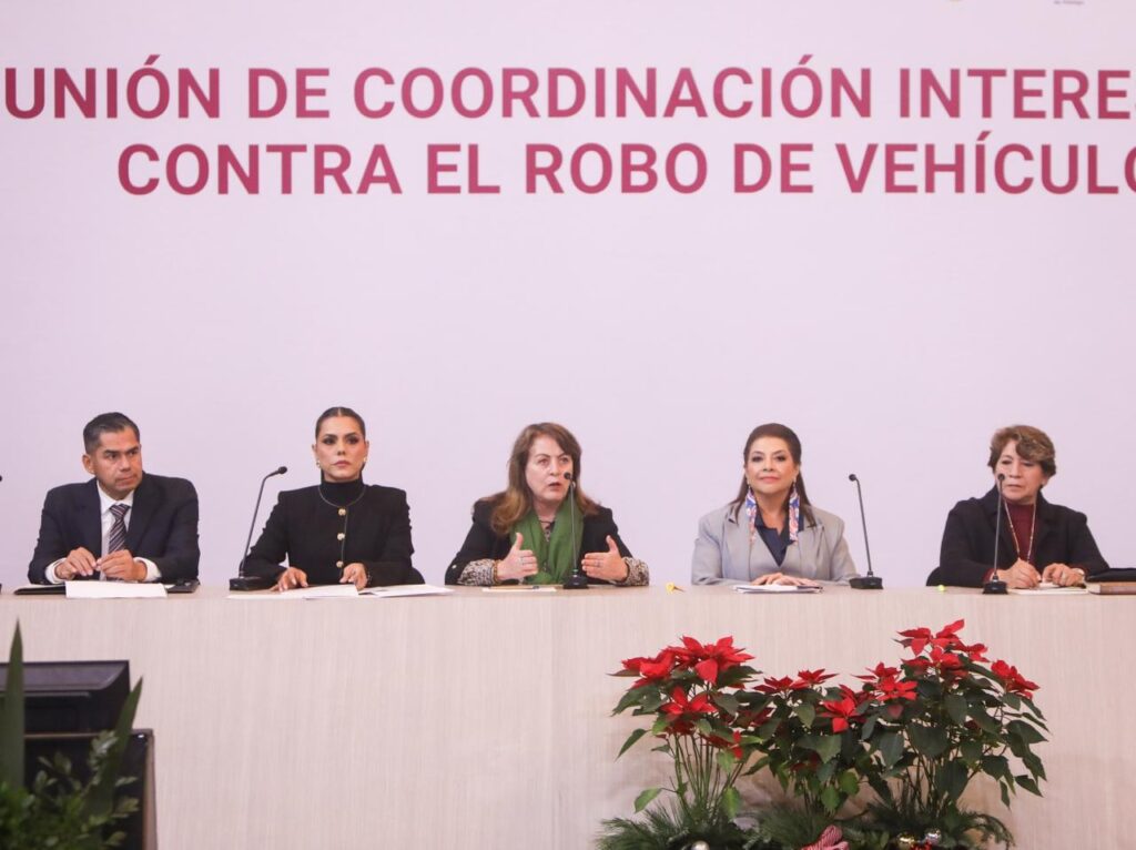 En el encuentro, que se llevó a cabo en el Museo de la Ciudad de México, y contó con la participación de la jefa de Gobierno de la capital del país, Clara Brugada Molina; Delfina Gómez Álvarez y Evelyn Salgado Pineda, gobernadoras del Estado de México y Guerrero, respectivamente, así como Alejandro Armenta Mier, gobernador de Puebla, se analizaron acciones conjuntas orientadas a la disminución del robo de vehículos particulares, motocicletas y autotransporte, uno de los delitos prioritarios en la agenda regional.