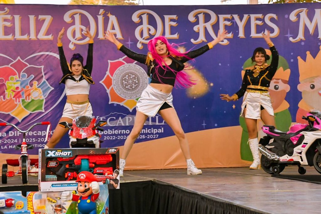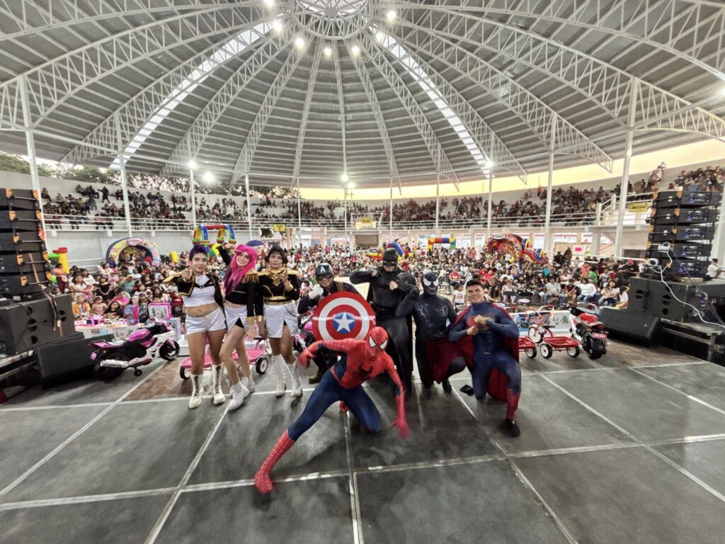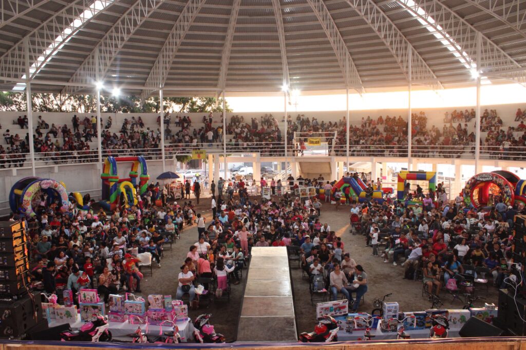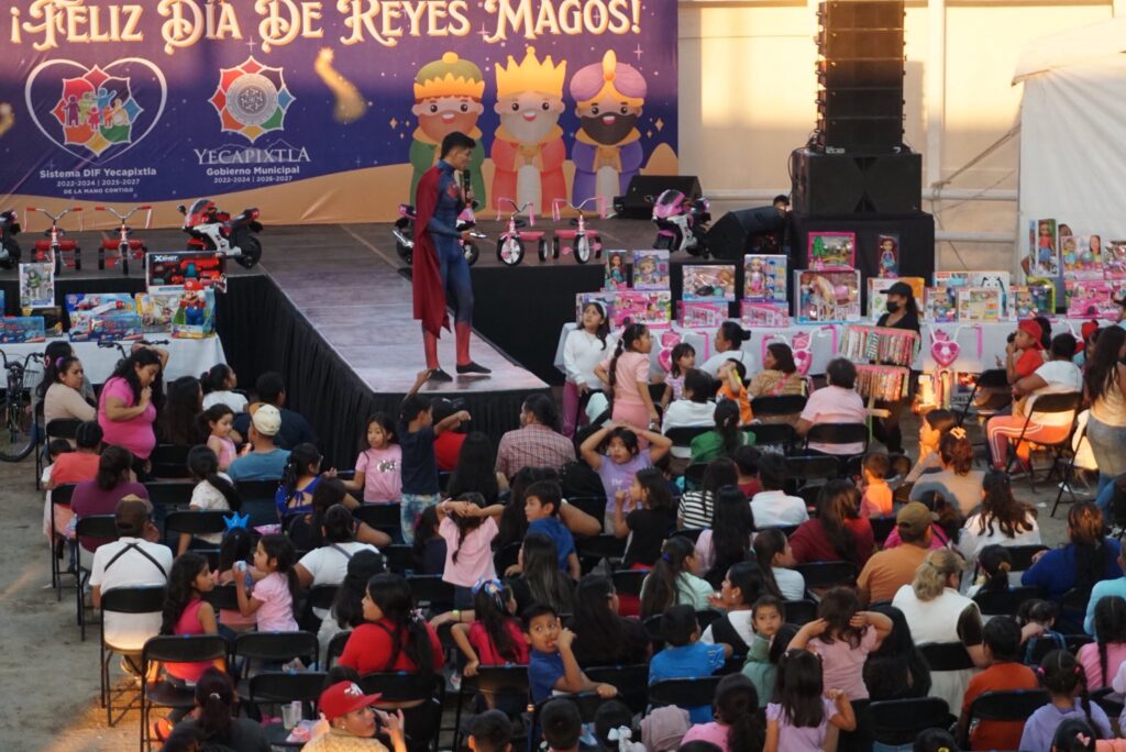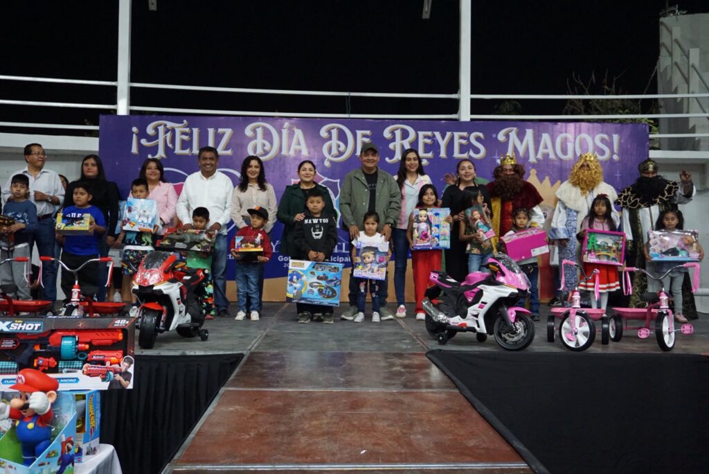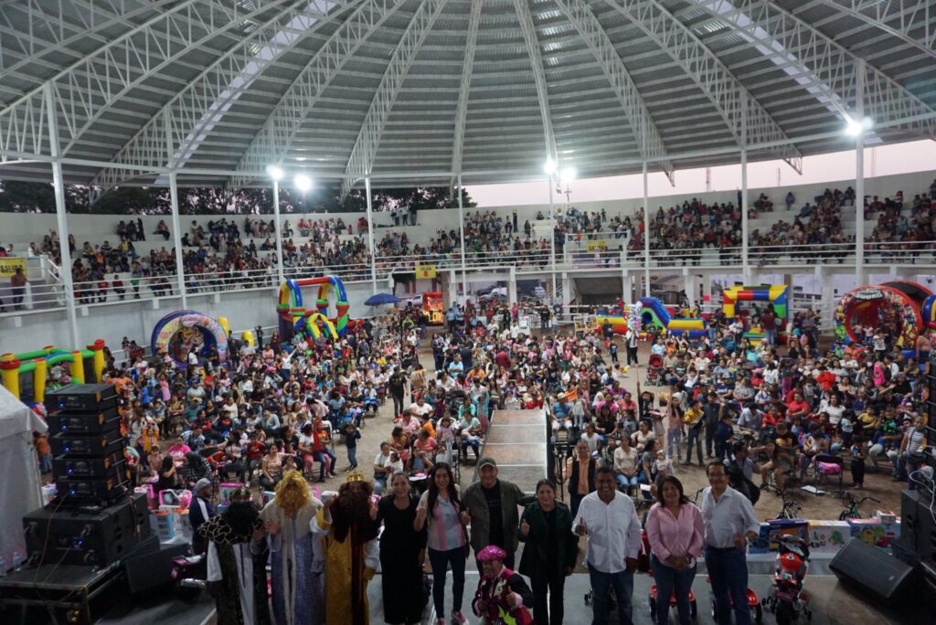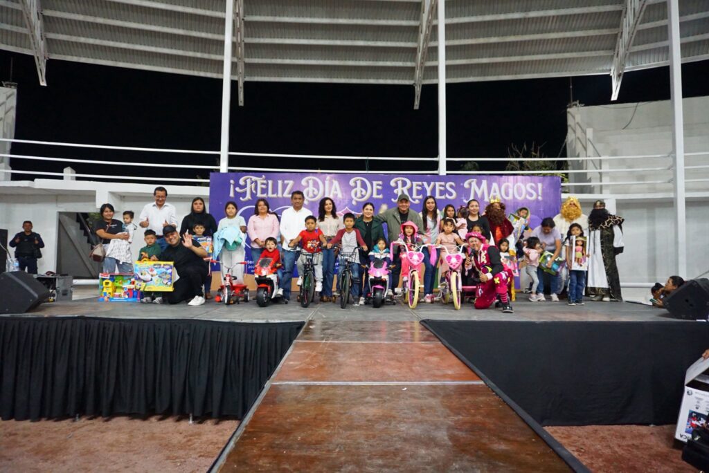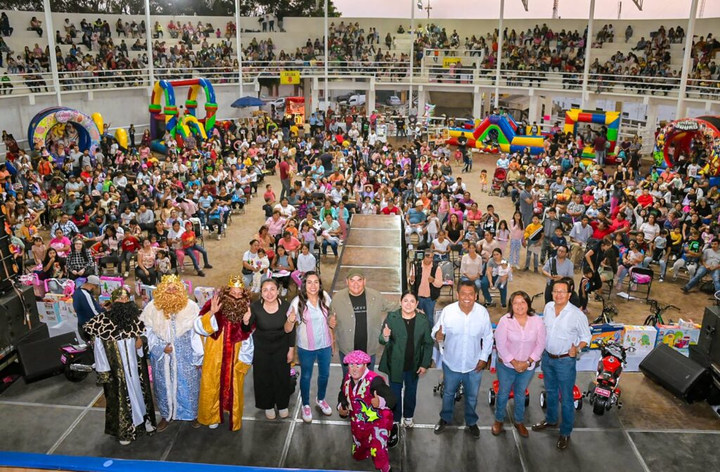 Yecapixtla Mor.(7 de enero) En un evento lleno de tradición y entusiasmo, el Gobierno Municipal de Yecapixtla celebró este martes el Día de Reyes Magos en la Monumental Plaza de Toros «La Corraleta». El festejo estuvo encabezado por el alcalde Heladio Rafael Sánchez Zavala, en compañía de la presidenta del DIF municipal, Yuri Méndez Alanís, y los integrantes del cabildo, quienes dieron la bienvenida a cientos de niñas y niños de diversas comunidades.