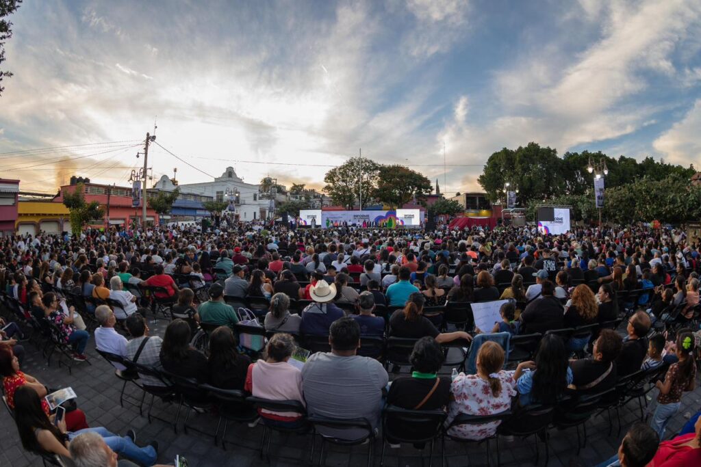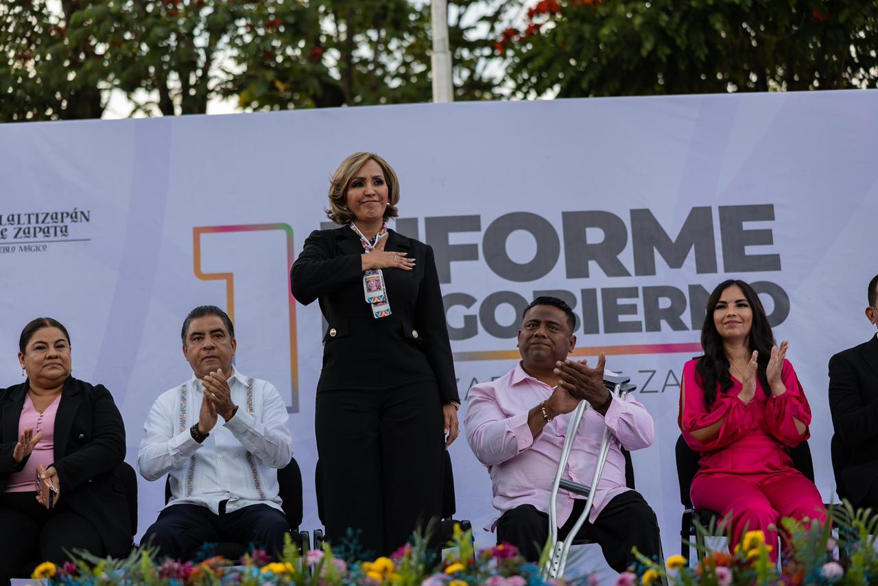 Ante ciudadanía, integrantes del Cabildo y autoridades invitadas, la alcaldesa abordó los principales ejes que han marcado su administración, entre ellos la inversión pública, la reorganización financiera del Ayuntamiento, la atención a los servicios municipales, el fortalecimiento de la seguridad, el impulso al campo, el desarrollo turístico y las acciones de bienestar social en las comunidades.
