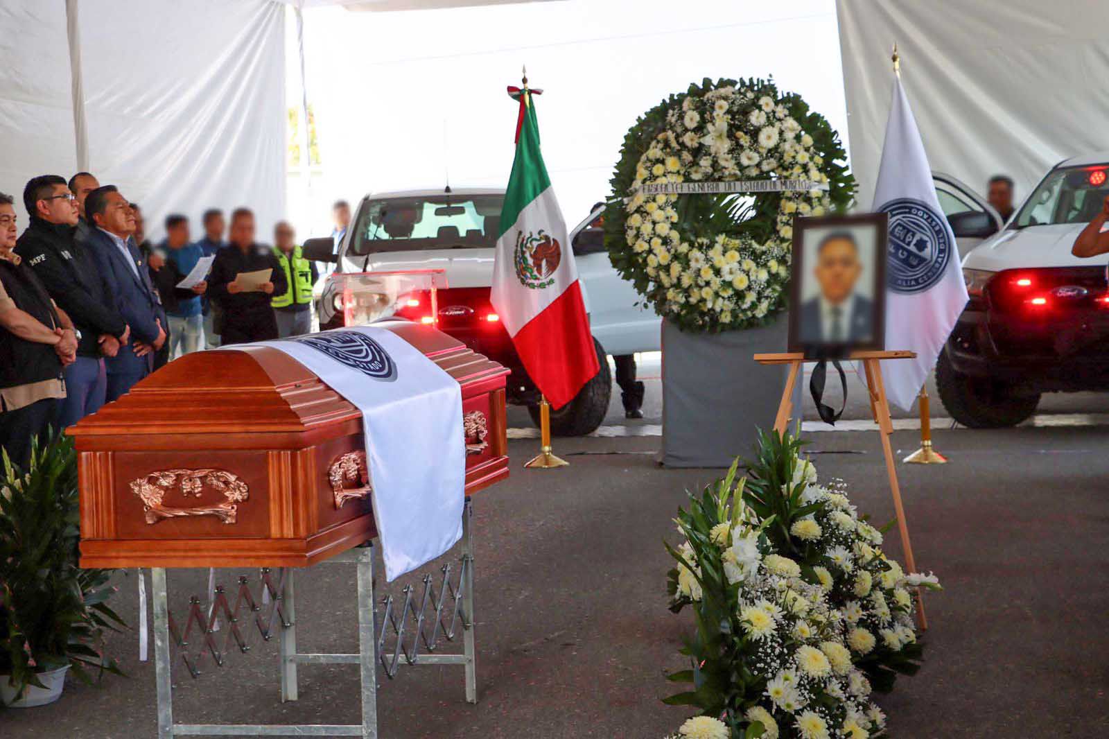 Reunidos en la Fiscalía General del Estado (FGE) de Morelos, ante familiares y amigos del agente caído en el cumplimiento de su deber, el Fiscal General, Fernando Blumenkron Escobar señaló que “su fallecimiento es la prueba más dolorosa de lo que enfrentan todos los días, las y los agentes de investigación criminal, el riesgo que conlleva su trabajo”.