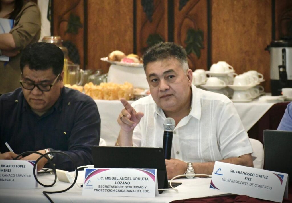 Cuernavaca, Mor. (30 de enero). – El titular de la Secretaría de Seguridad y Seguridad y Protección Ciudadana (SSPC) Morelos, Miguel Ángel Urrutia Lozano, presentó ante la Cámara Nacional de Comercio, Servicios y Turismo (Canaco-Servytur) de Cuernavaca, los avances y proyectos de la Estrategia Estatal de Seguridad Pública, quienes refrendaron su confianza a esta acción que impulsa la administración de la gobernadora Margarita González Saravia.